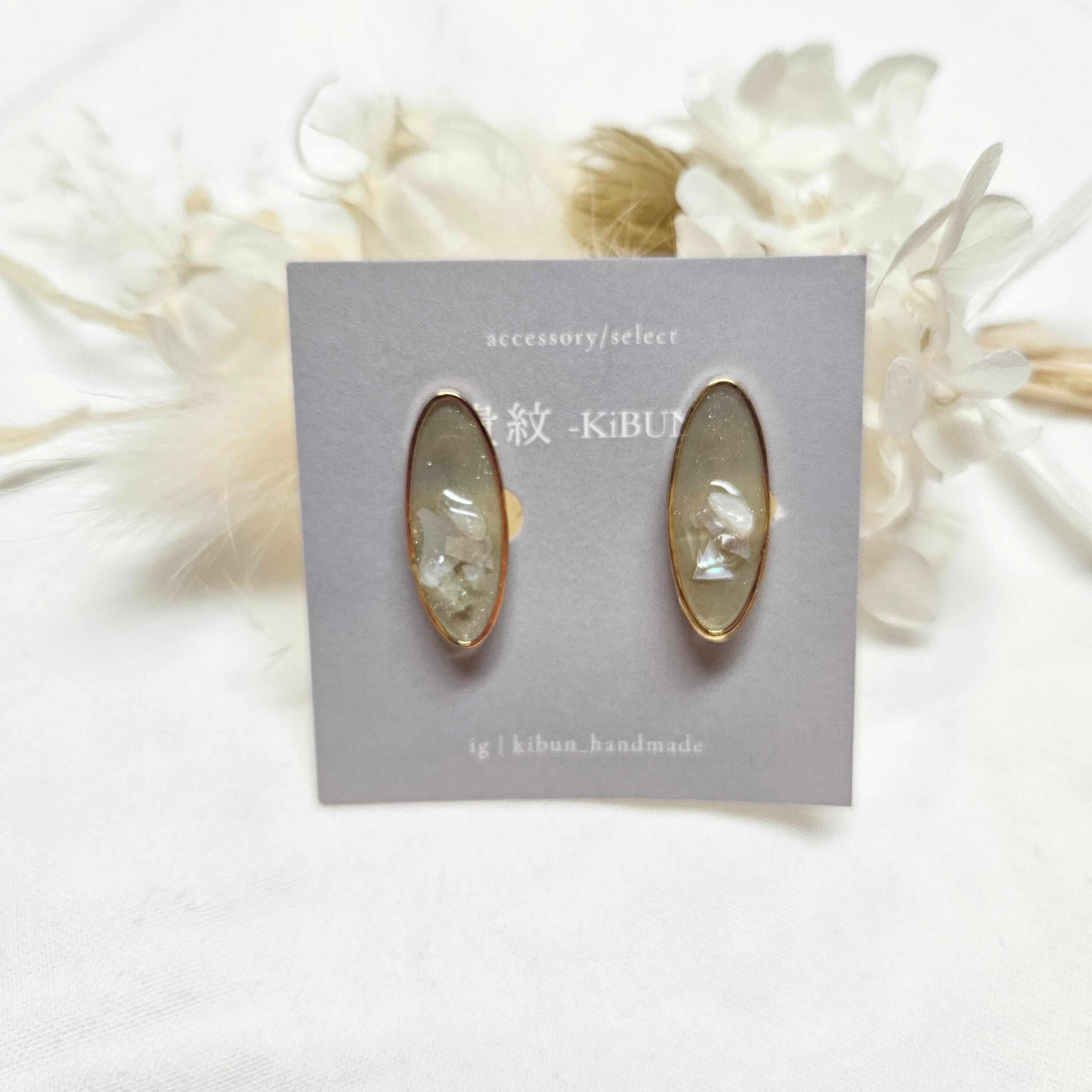 ゴールドの枠の中にライトグリーンのマグネットネイルを塗布してキラキラさせた土台に