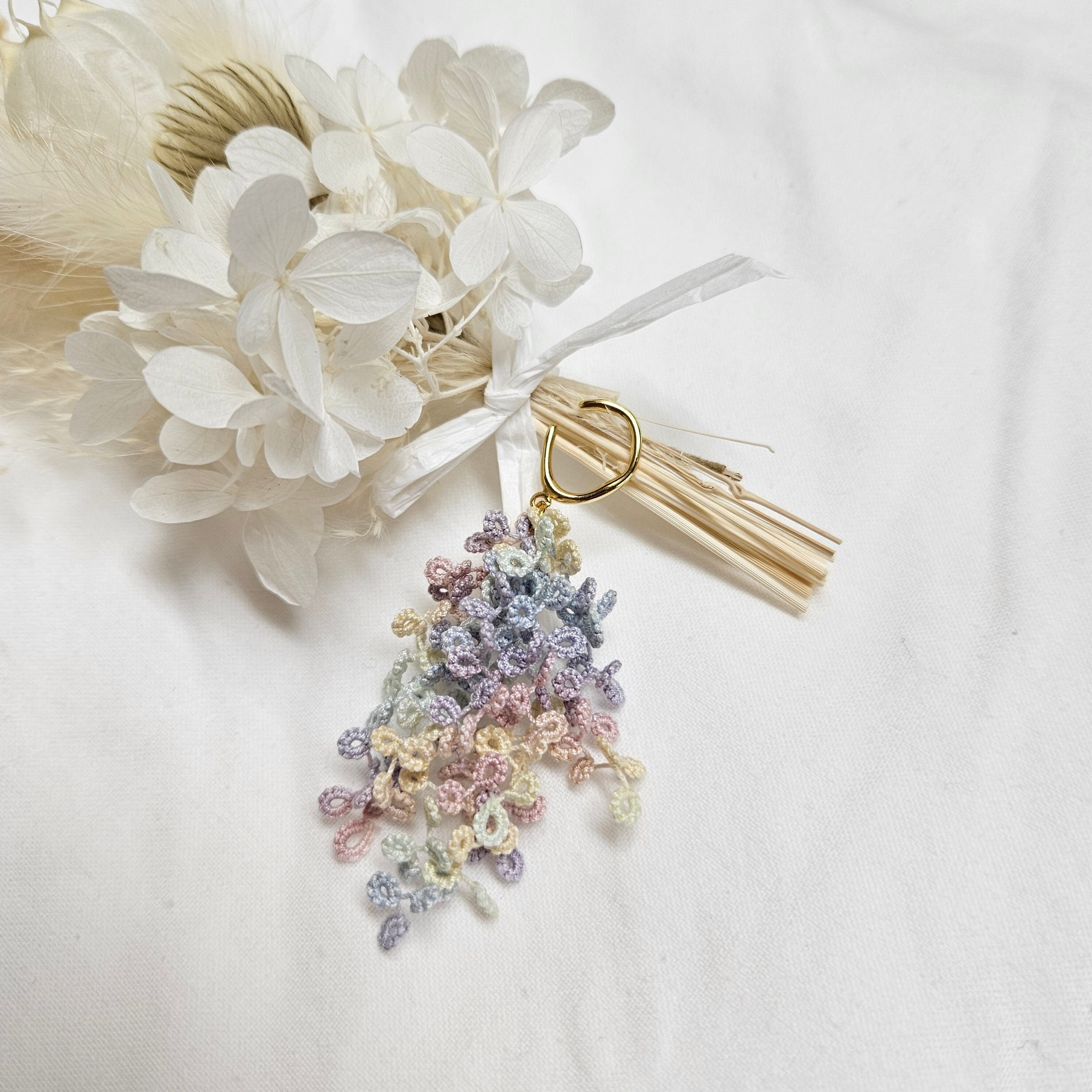 タティングレースのイヤーカフは、あなたの耳元で優雅に揺れることで、あなたの美しさを引き出します。日常だけでなく特別な場面でも活躍するアイテムです。この機会にぜひ手に取ってみてください。
